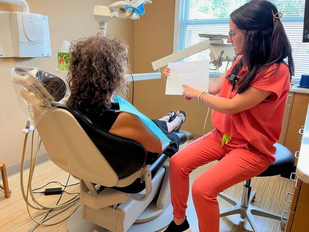 Using a very thin instrument called a periodontal probe, our therapists measure the depth of any pockets where gums are beginning to pull away from teeth. They gently insert the probe between the gums and tooth surface, and chart how far down the pocket goes. A healthy mouth may have a depth of 1-3 mm. A depth of 4 mm or more will require ultrasonic scaling.